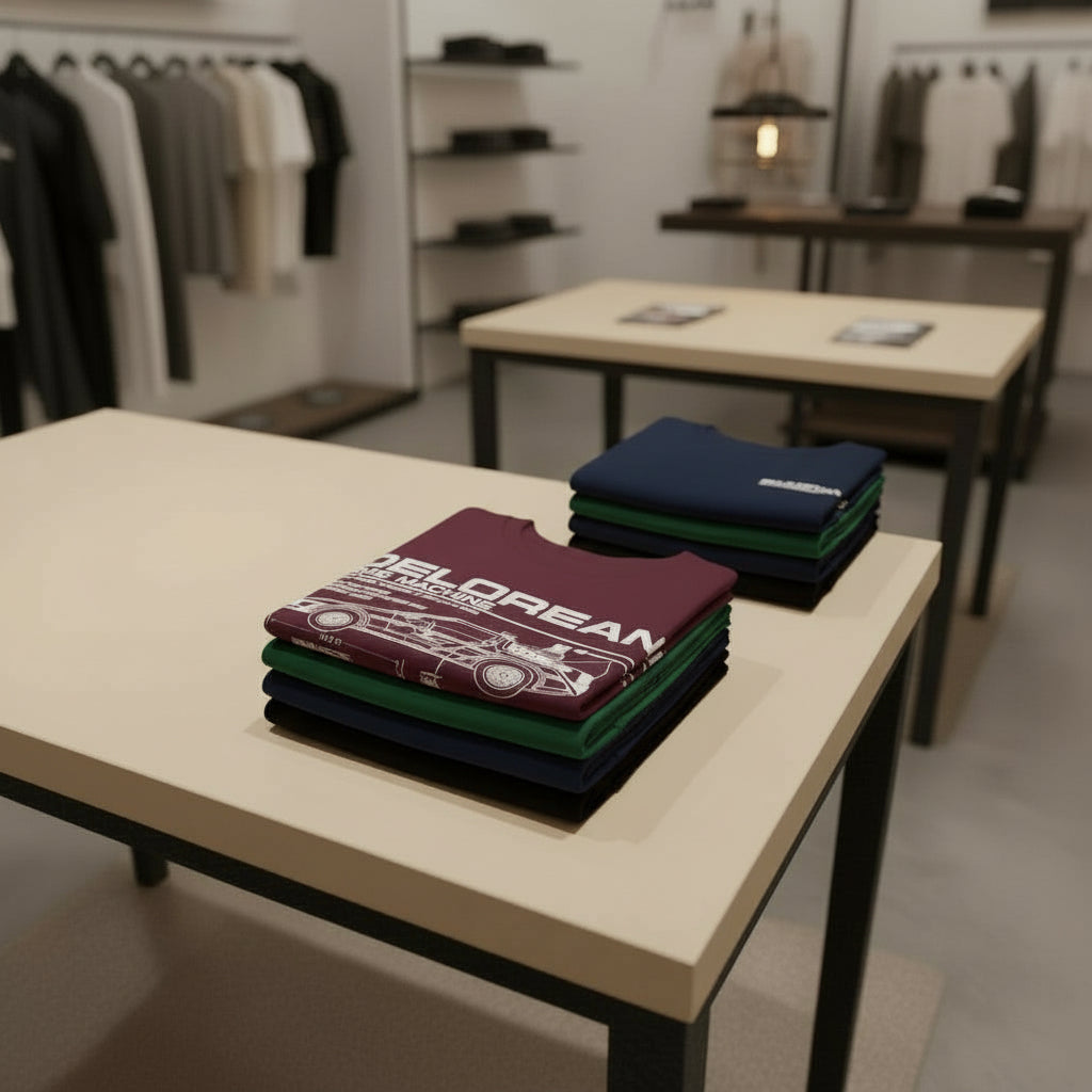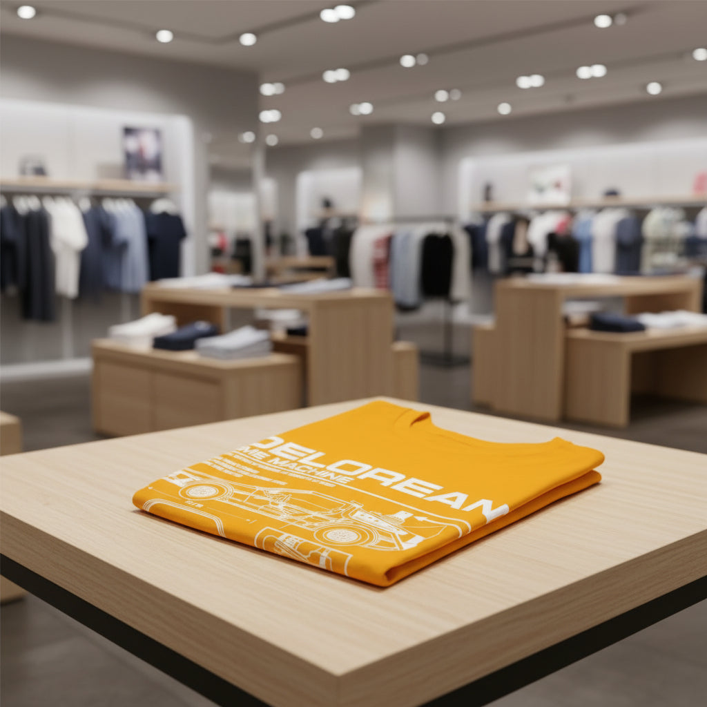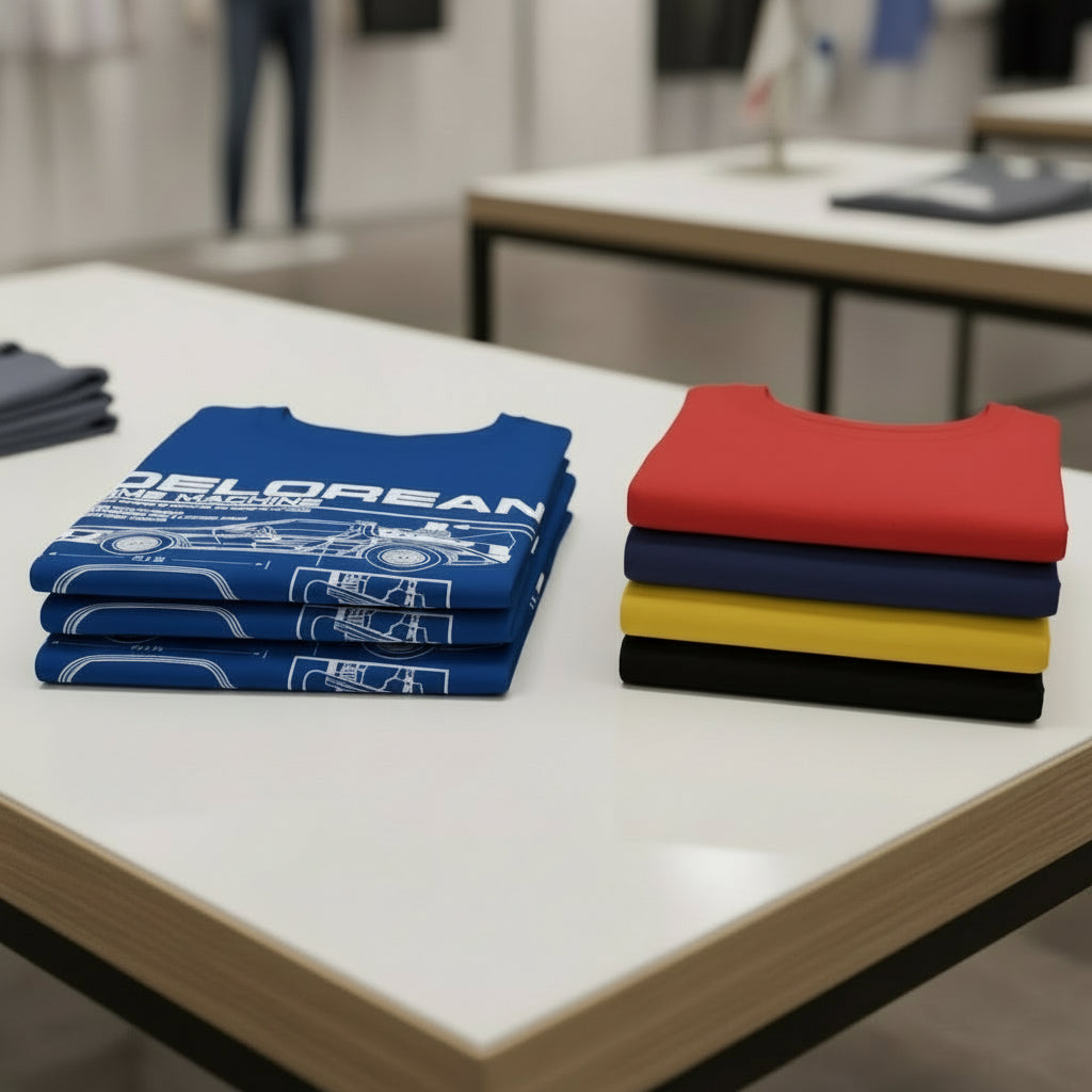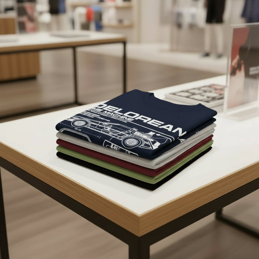 Exclusive Blueprint Design: Features a detailed technical blueprint (schematic) of the famous DeLorean that captures the essence of the Time Machine.