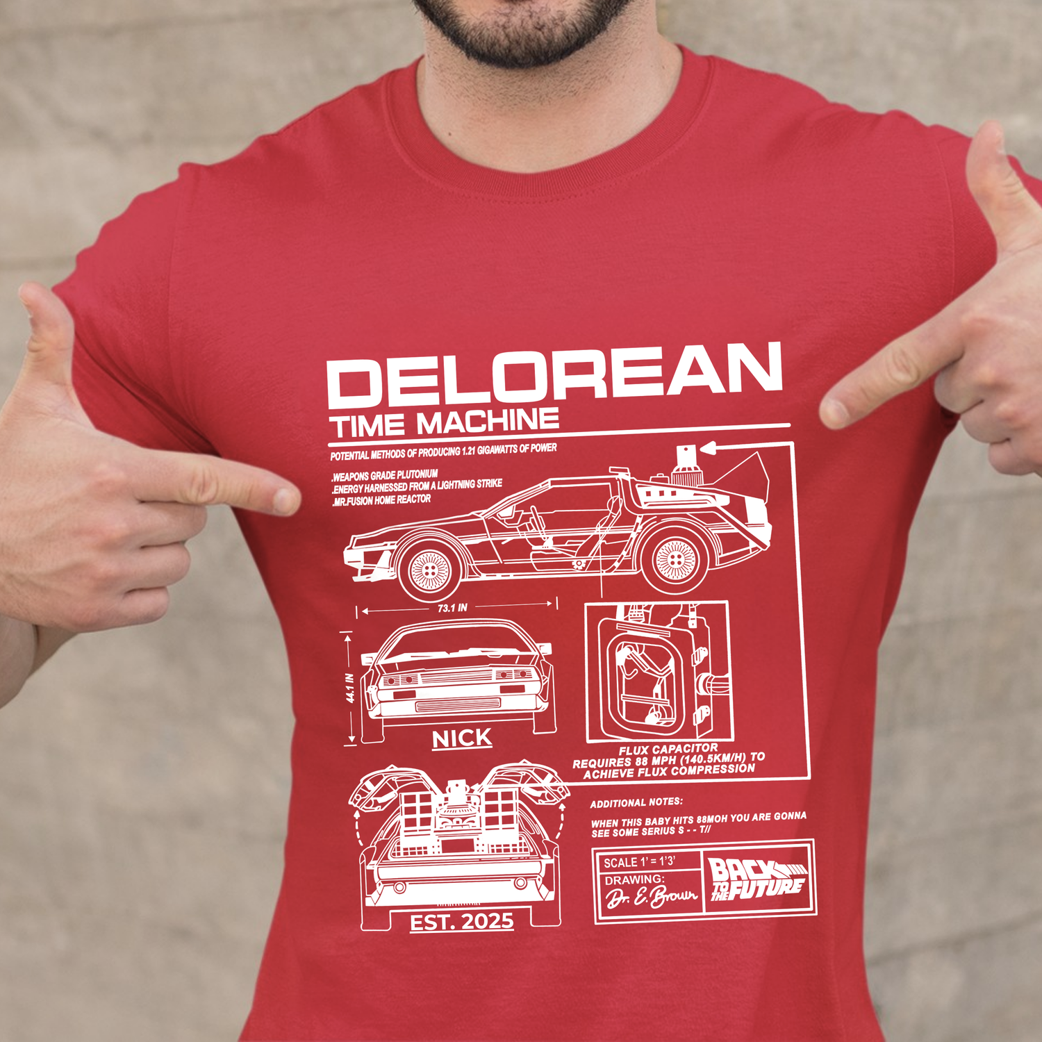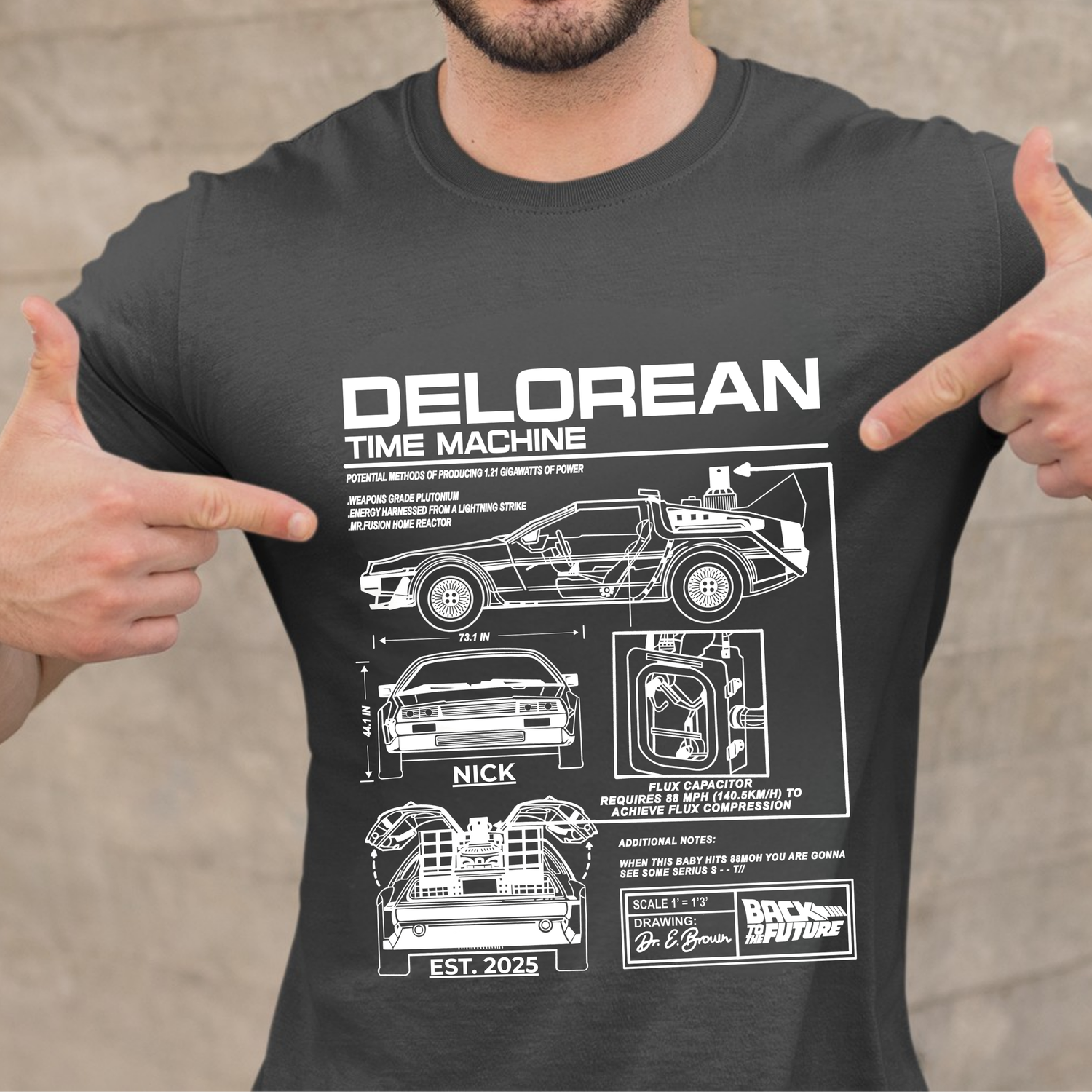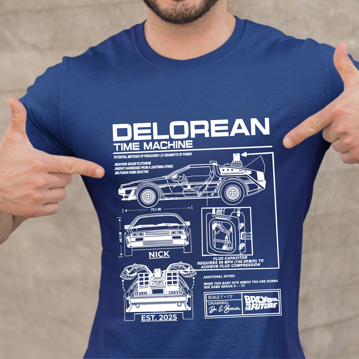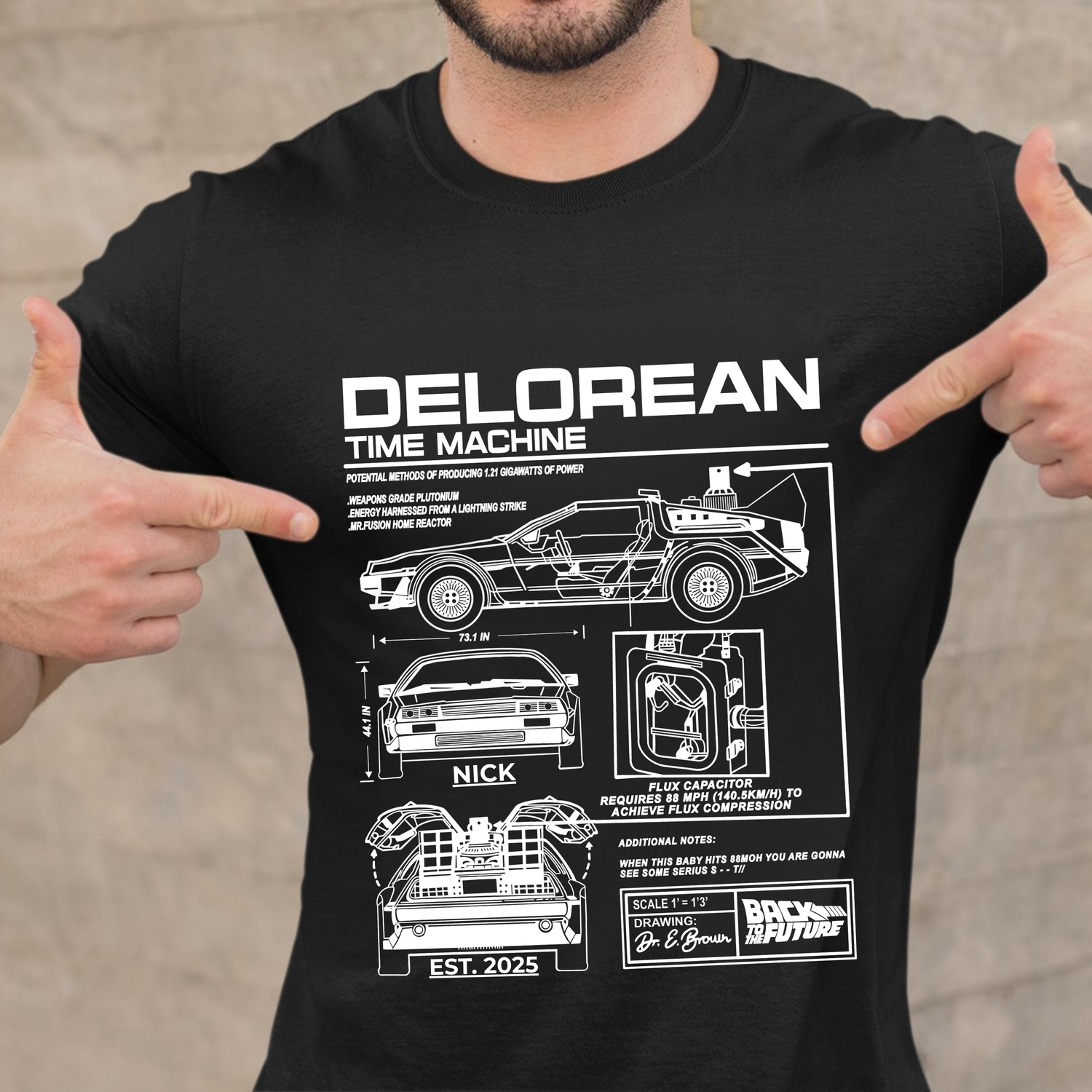 100% Customized! The star feature: Add your Name or Nickname and your special Year (birth, graduation, or that crucial year in your personal timeline). Imagine wearing a shirt that proclaims you as the official pilot of your own time machine.