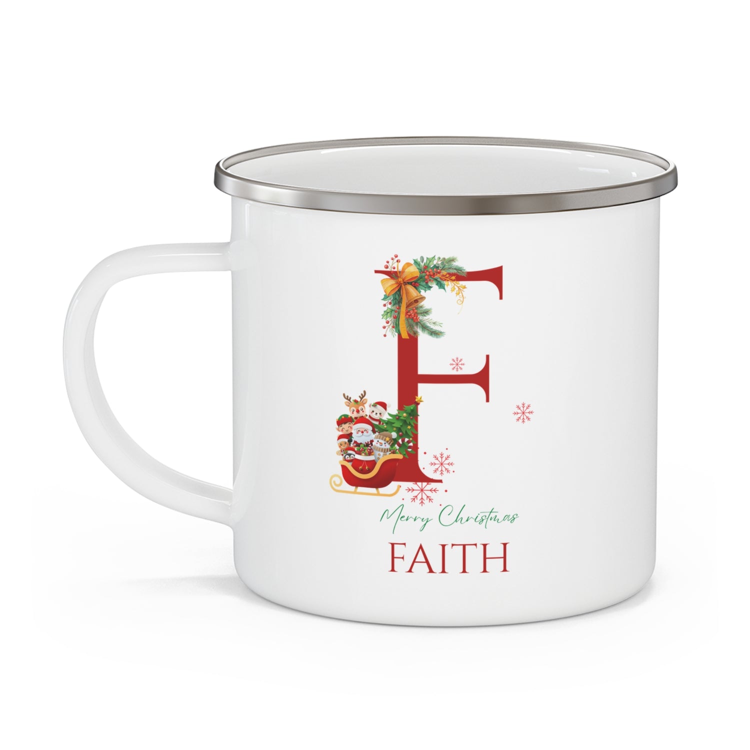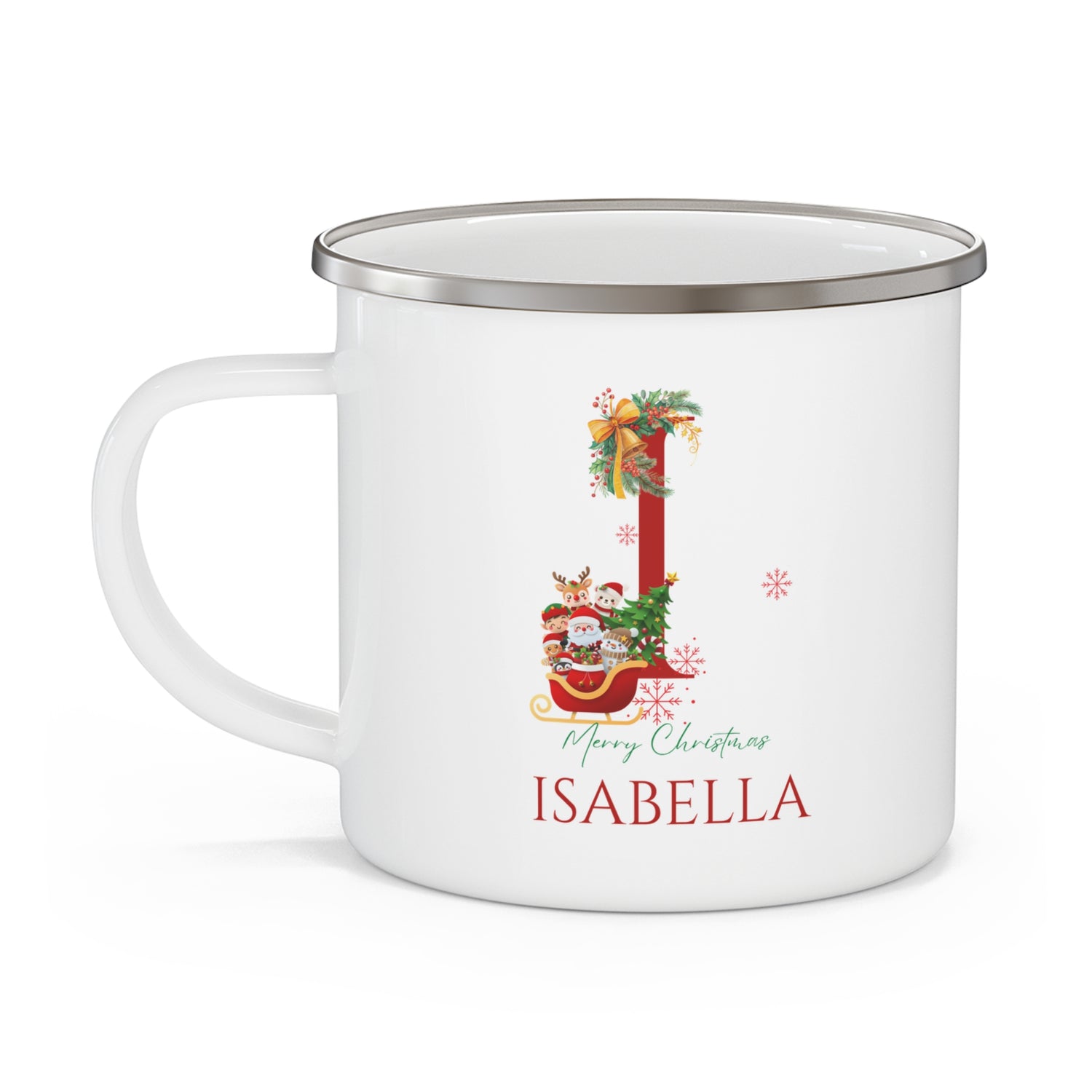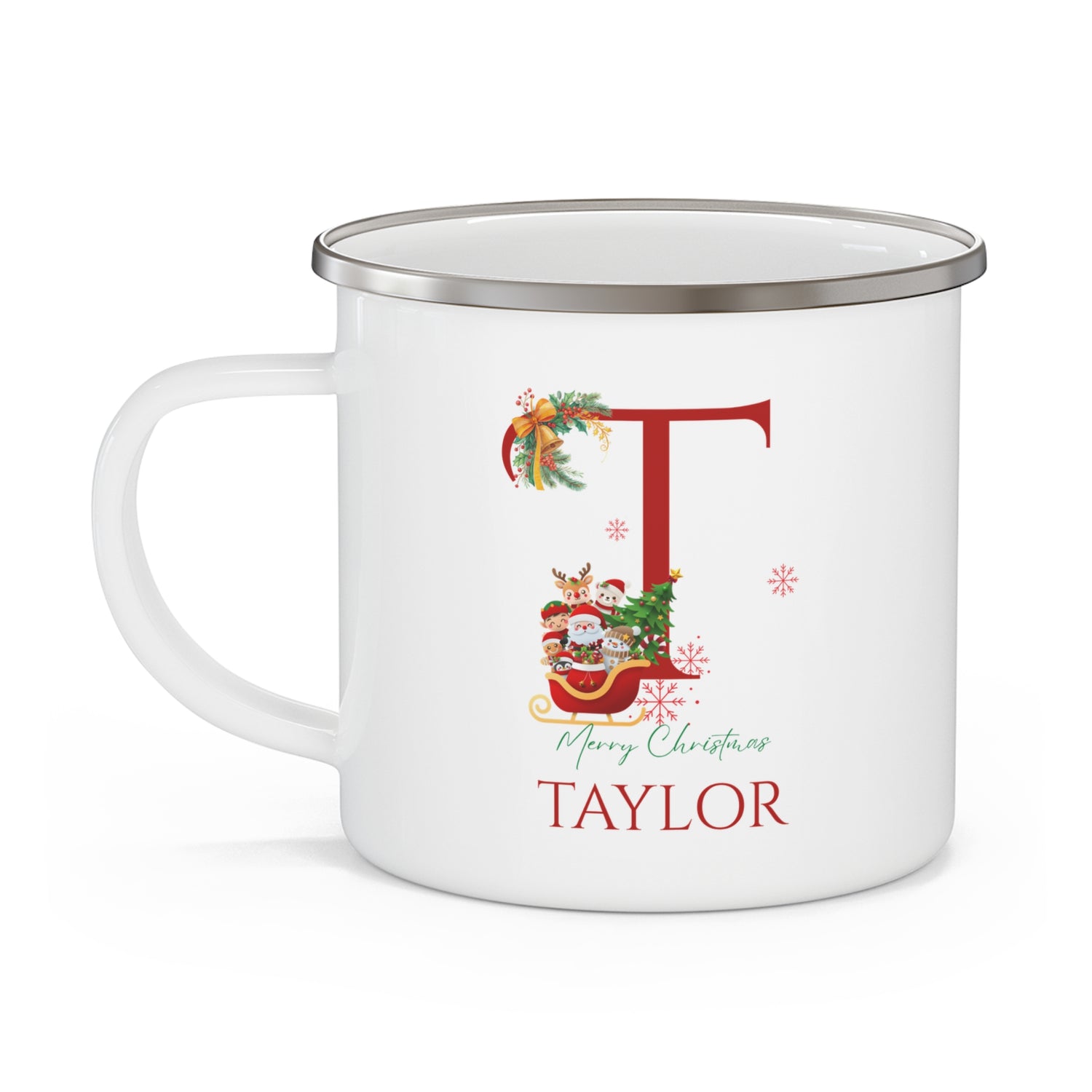 Unique Christmas Gift: Personalized Initial & Name Enamel Camping Mug – Cutest Alphabet Letter Design