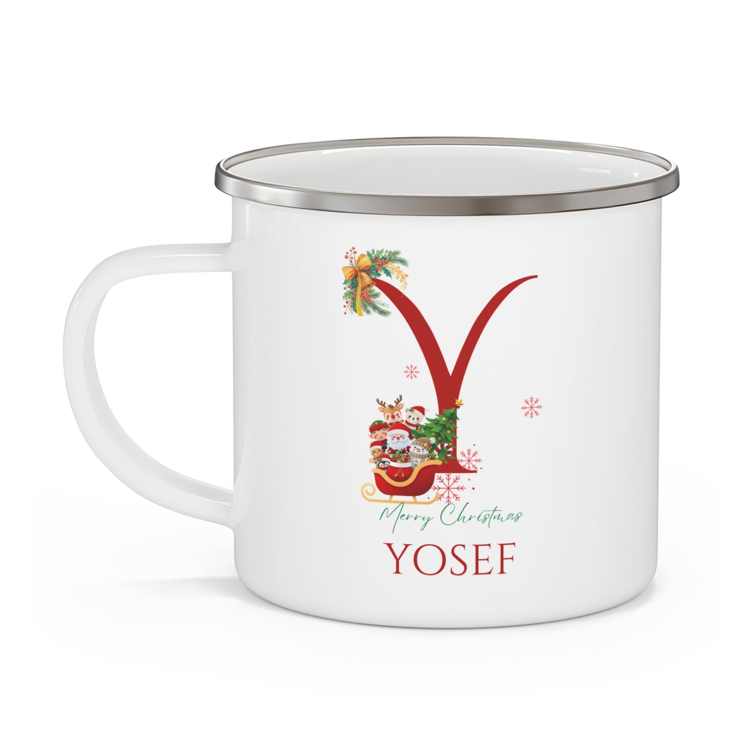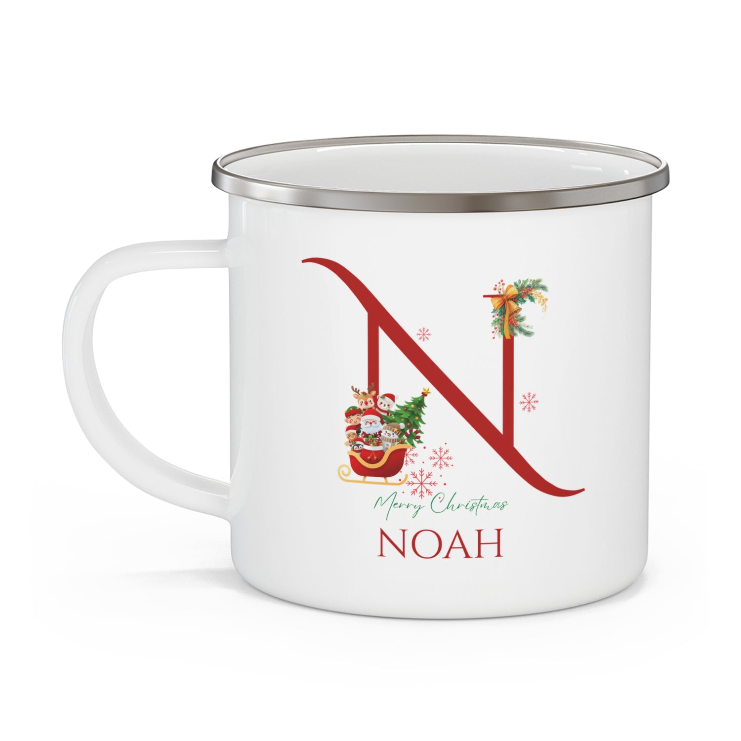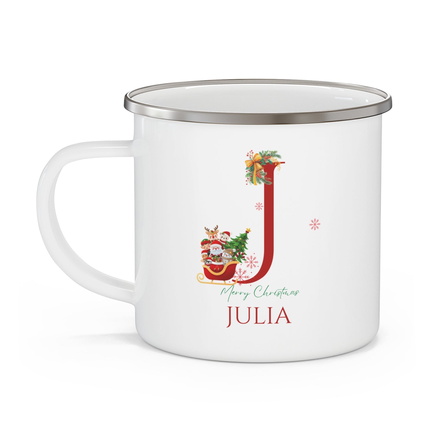 Unique Christmas Gift: Personalized Initial & Name Enamel Camping Mug – Cutest Alphabet Letter Design